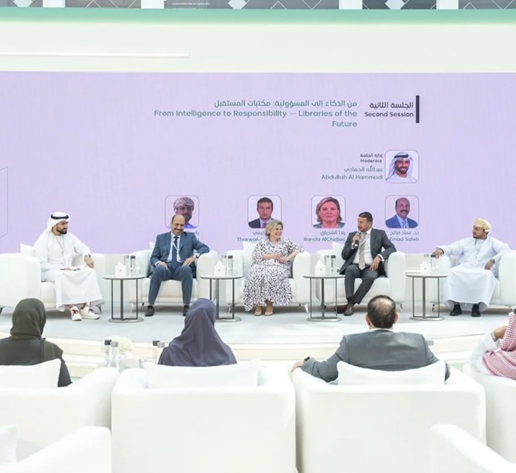 A second session, “From Intelligence to Responsibility: Libraries of the Future,” featured Dr Imad Saleh, Randa Al Shadyaq, Tharwat Al Alimi, and Yasser Al Louati.